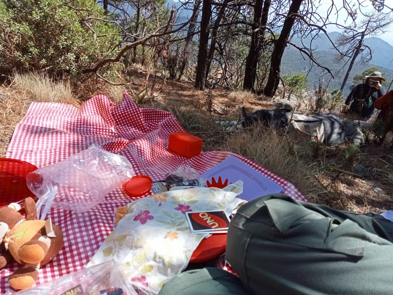 Felices por la activación y el reto de subir con Moon y Rurik comimos un delicioso espagueti a la carbonara preparado por los swl que en verdad les queda delicioso, una vez que terminamos de comer nos preparamos para bajar y casi llegando al auto en las faldas de la montaña Moon casi logra su sueño, cazar una vaca, si como lo escuchan ella es tremendamente cazadora y tuve que sujetarla con su correa y terminar la bajada con ella a la cintura, pero no logro morder a ninguna vaca.
